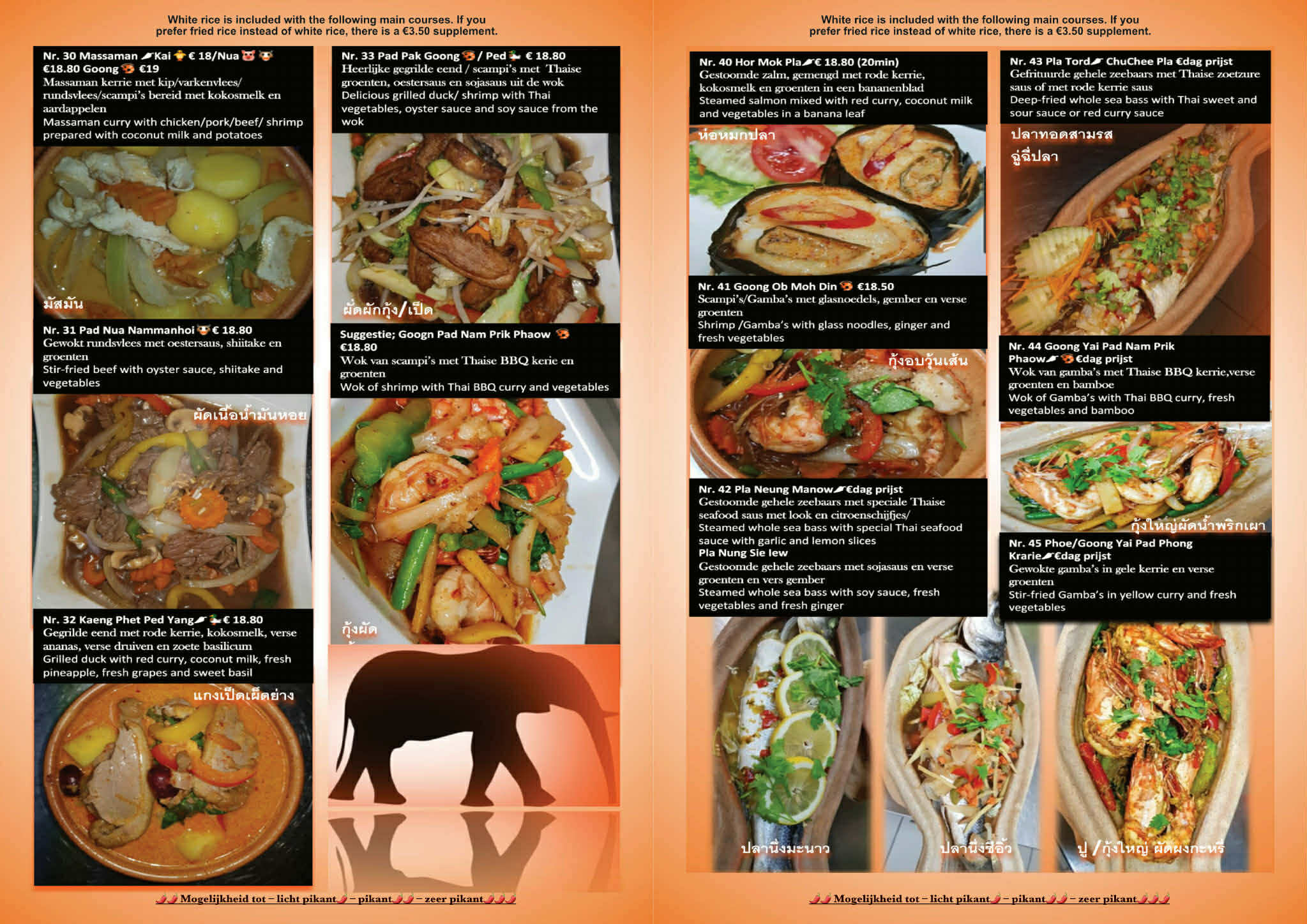 Nr. 45 Goong Yai Pad Phong Krarie🌶 Gewokte gamba’s in gele kerrie en groenten