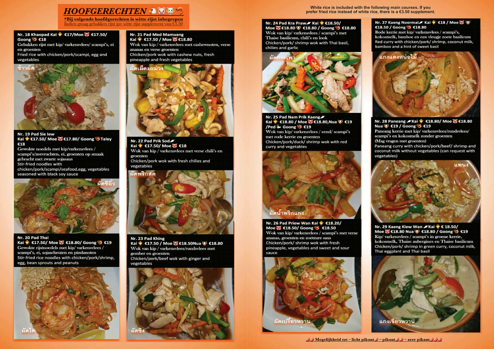 Nr. 18 khoa Pad Kai Gebakken rijst met kip en groenten